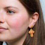 Orecchini a croce in feltro con perline Miyuki, perline dorate e strass centrale.