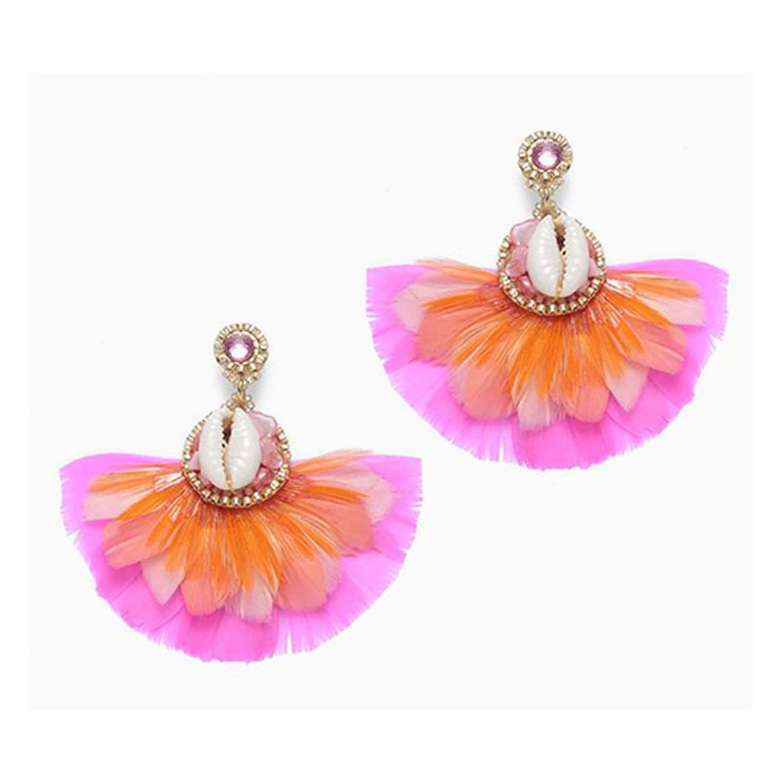 L’anello inferiore è rifinito con piume sfumate arancioni e fucsia.