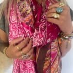Sciarpa oversize multicolore composta da 4 diversi quadrati di tessuto.