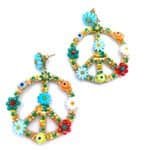 Peace and Love dangling earrings with multicoloured Miyuki beads, flowers and protective eye beads