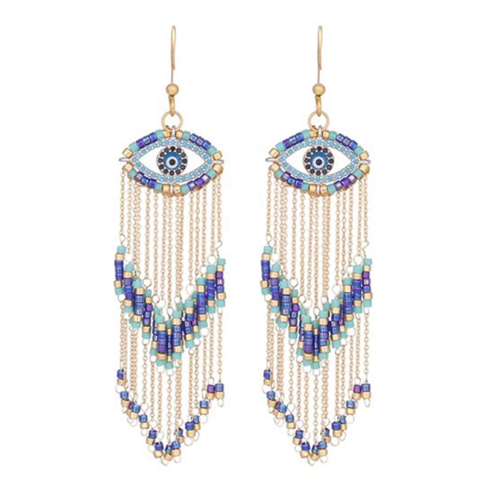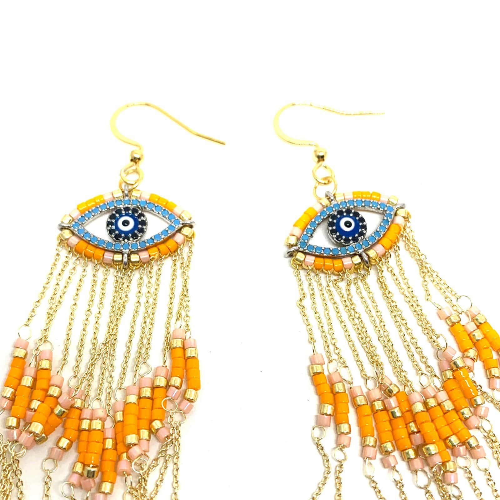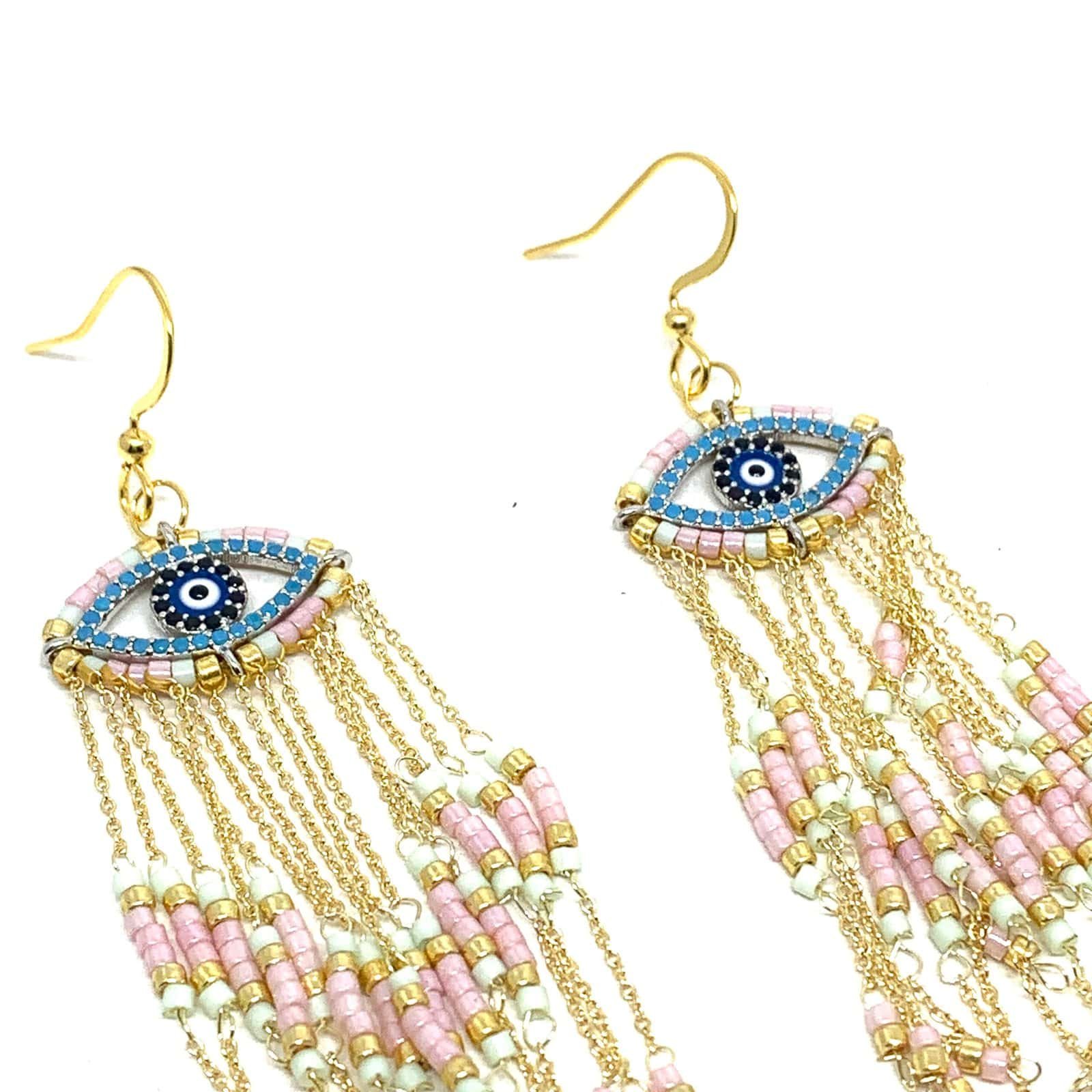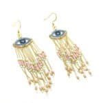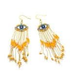 Fine glass and mother-of-pearl beads form a lucky eye.