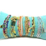 Bracelet with multicolored cords, Miyuki beads and stainless steel chain.