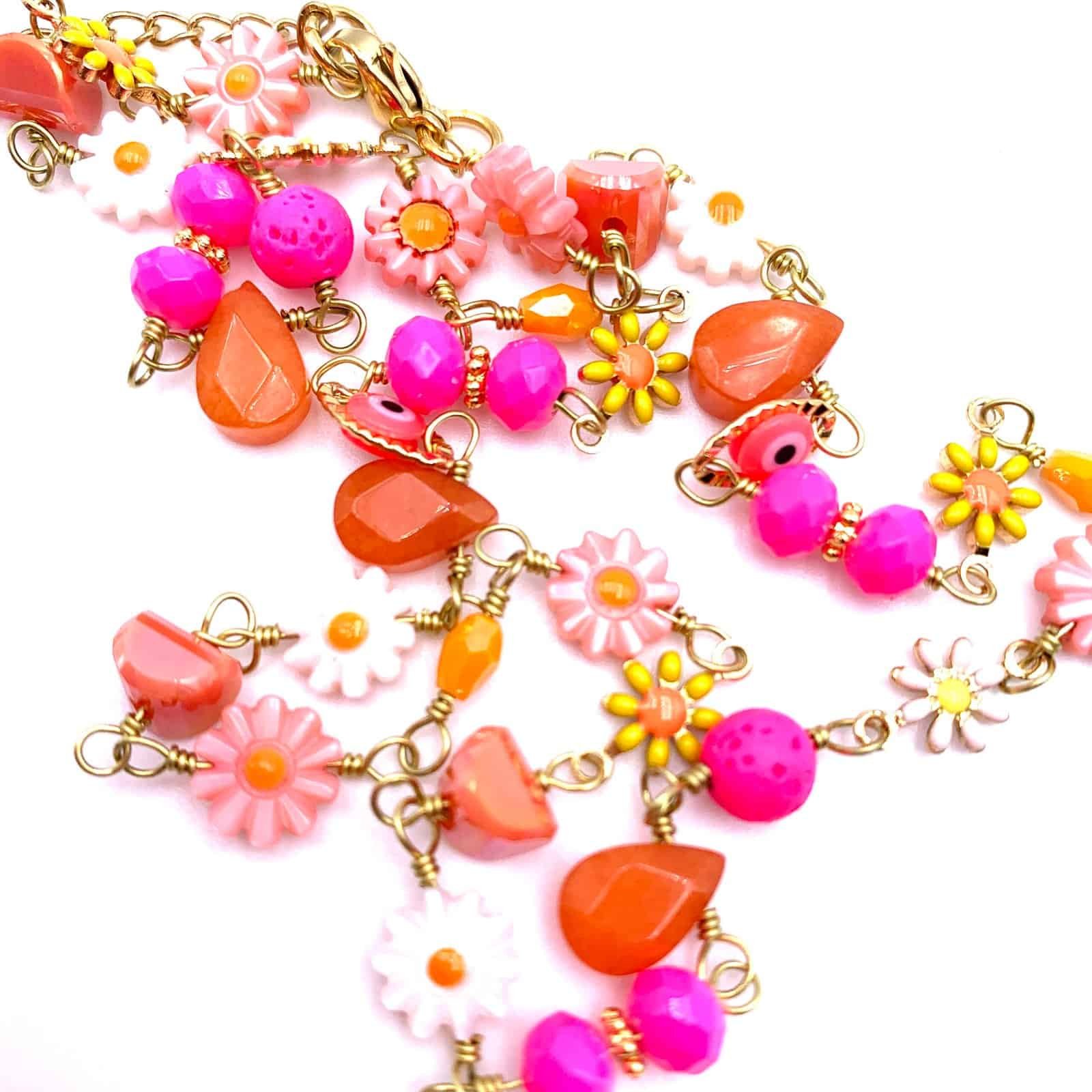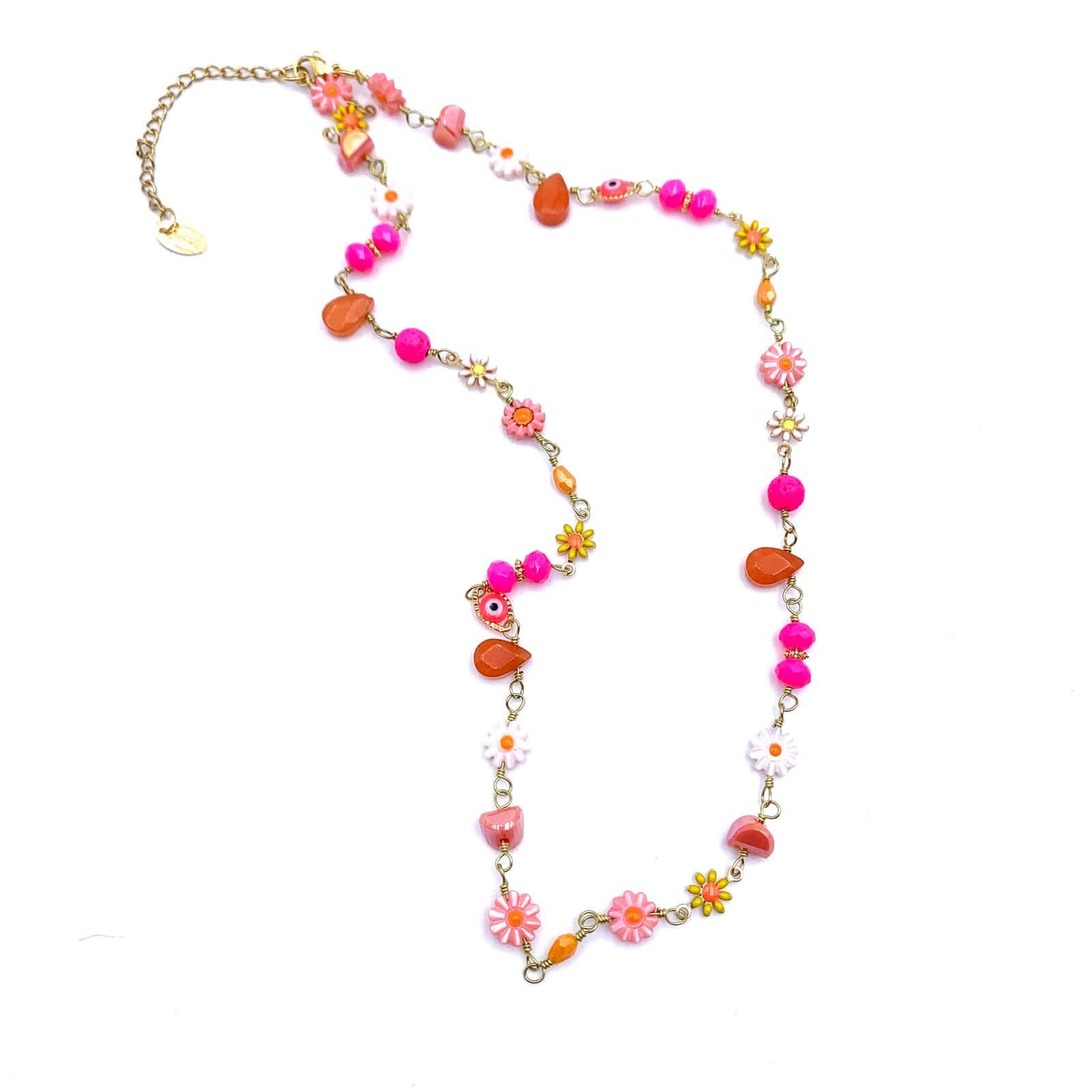 FLORA Fashion Necklace with Multicolour Flower Beads