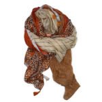 Foulard oversize multicolore composé de 4 carrés de tissus différents.