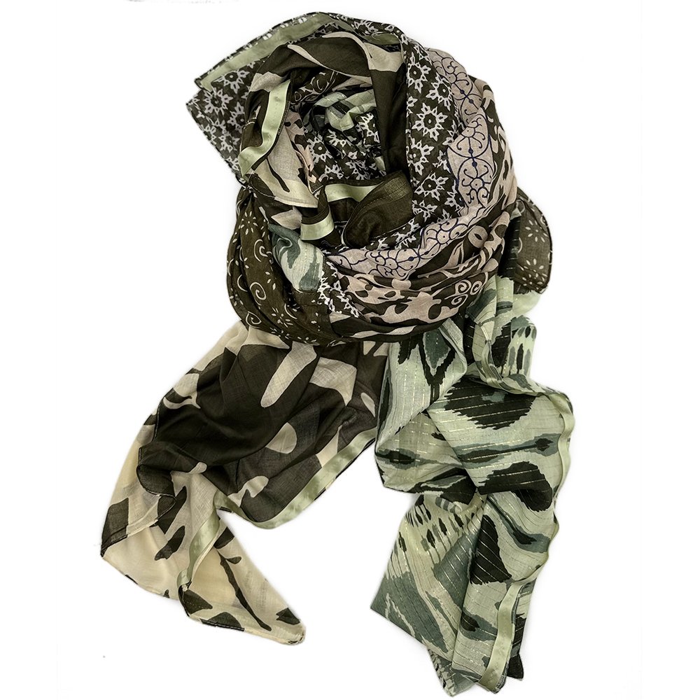 Foulard oversize multicolore composé de 4 carrés de tissus différents.