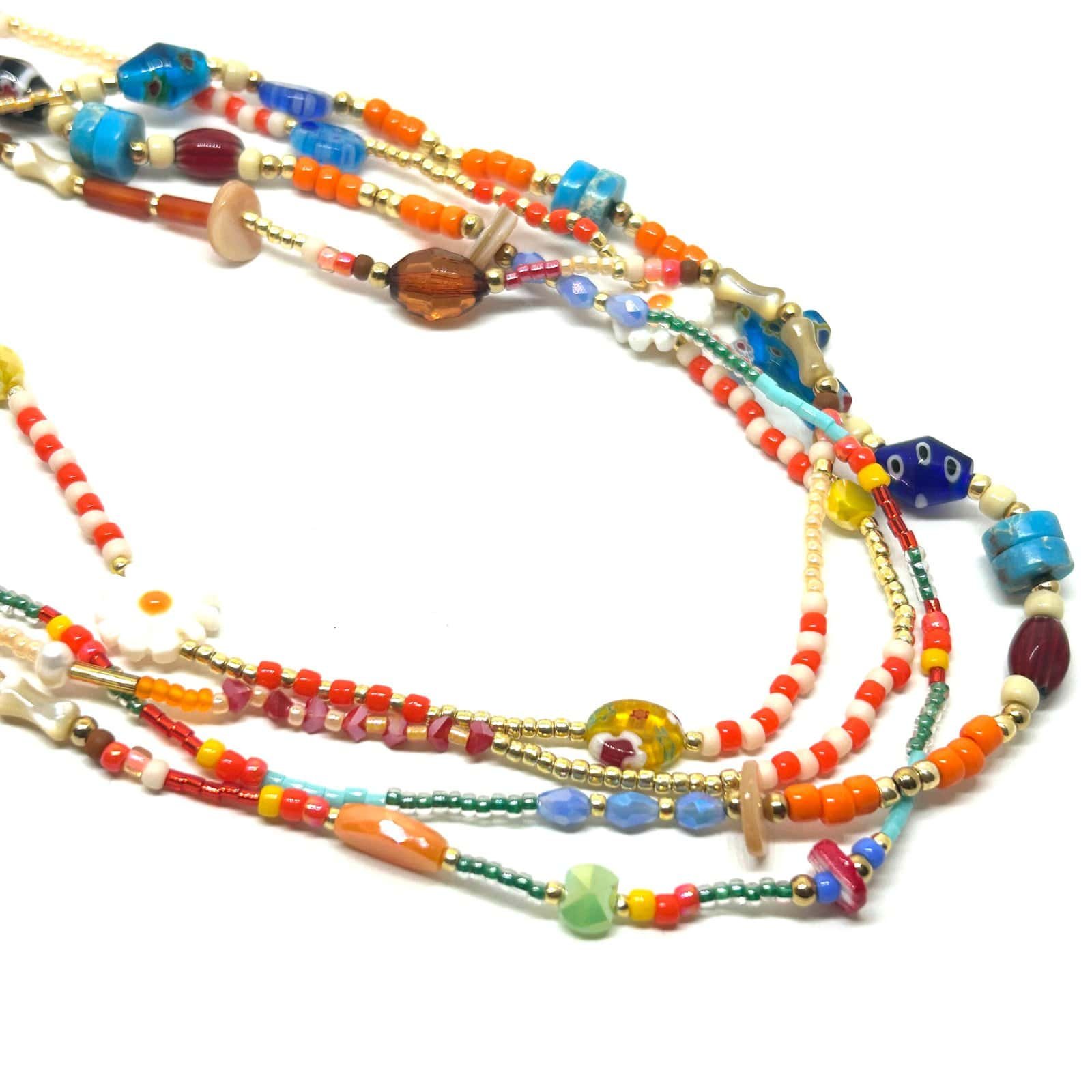 Long necklace made of Murano pearls, natural stones, glass beads, protective eye and multicolored pieces.